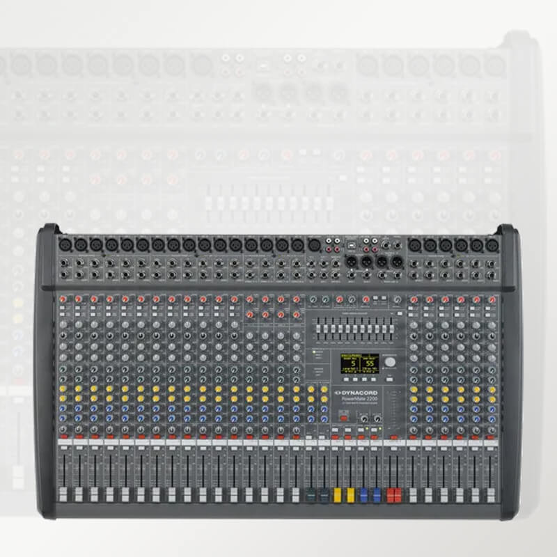 | Content | Dynacord Power Mixer OverviewThe PowerMate3 22-Channel Powered Mixer from Dynacord features 18 mic/line and four mic/stereo-line channels. It also has six auxiliary ports, two of them switchable pre/post-fader. Two effects processors offer 100 factory presets, including the already legendary PowerMate reverbs. Each preset can be edited and stored to 20 user memories. Dynacord PowerMate 2200-3 22-Channel Powered Mixer in Pakistan A built-in USB audio interface shares four playback and four recording channels simultaneously with a PC or Mac, following studio standard 24-bit, 96 kHz. An additional MIDI interface allows the integration of instruments such as keyboards. The 11-band stereo graphic equalizer can be routed to master or monitor channels. The amplifier features 2 x 1000W at 4 Ohms (RMS). Steinberg Cubase software Efficient and lightweight with modern switching mode power supply technology and a class‑D output stage Optional speaker protection allows limitation of long-term power without giving up dynamics Made in GermanyIn the Box | THE MIXER THAT CHANGED THE RULES38 in / 28 out Digital Mixer with remote wireless control